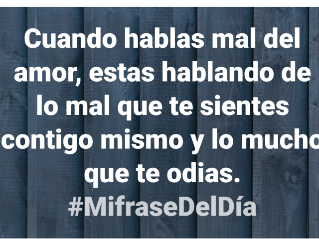 Hablando de amor en 19 marzo, 2017 por ISAIJOACHIMen Sin categoría Cuando hablas mal del amor En realidad estas hablando de lo mal que te percibes, De lo que desprecias en ti De lo mucho que te odias. @Perspicuus Compártelo: Haz clic para compartir en X (Se abre en una ventana nueva) X Haz clic para compartir en Facebook (Se abre en una ventana nueva) Facebook Haz clic para compartir en Telegram (Se abre en una ventana nueva) Telegram Haz clic para compartir en WhatsApp (Se abre en una ventana nueva) WhatsApp Me gusta Cargando... Relacionado
